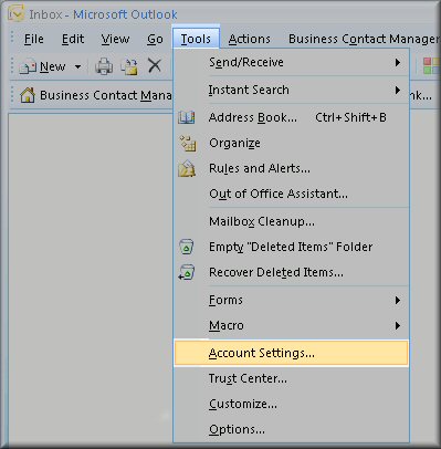 Open Outlook 2007 and add choose the Tools > Account Settings... menu item