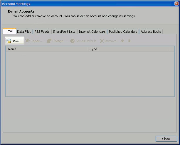 Choose the Email tab and then click on the New button.