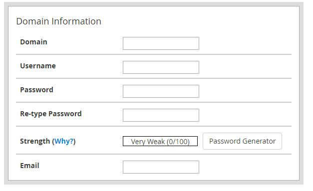 First, WHM needs to know what the domain name will be for the primary website on this cPanel account.