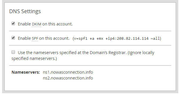 Put a check mark in Use the nameservers specified at the Domains Registrar. (Ignore locally specified nameservers.) this will set them to your custome nameservers or ours.